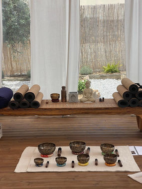 Singing bowls, other sound healing tools, inspiring scents from the world.. from both sides of the space you will enjoy sea view and mountain view.
